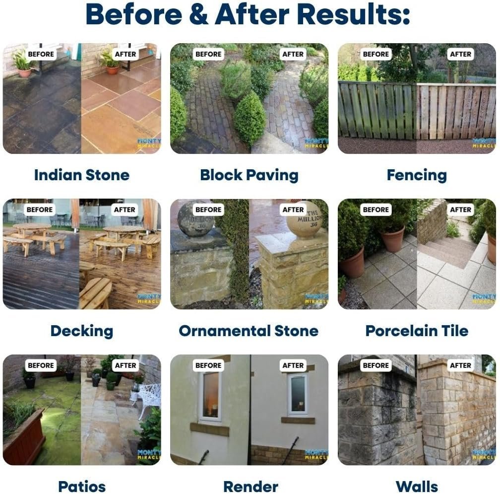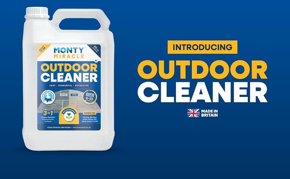 Monty Miracle Complete Outdoor Cleaner 5L Bottle – Fast Effective Stain Remover for Patios Decking Fencing Paths Driveway Render Eco-conscious Slip-Free Results in 6-10 Minutes